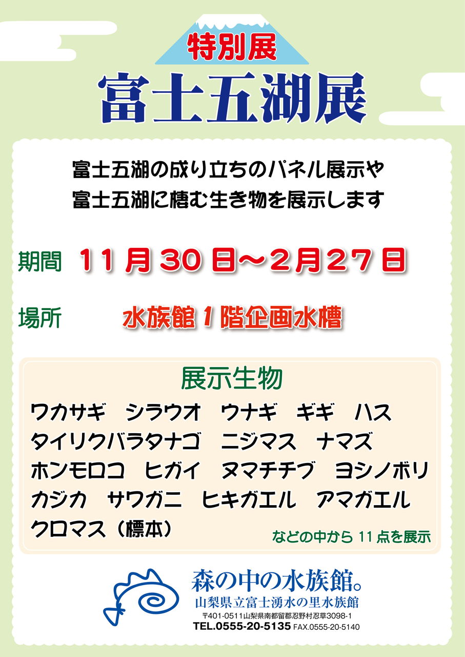 富士五湖の成り立ちのパネル展示や、富士五湖に棲む生き物が展示されるので、