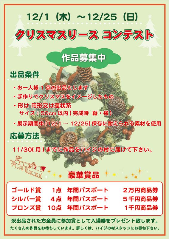 ジェルキャンドル作り(土日祝日)、第6回 光の花園(イルミネーションコンテスト)、