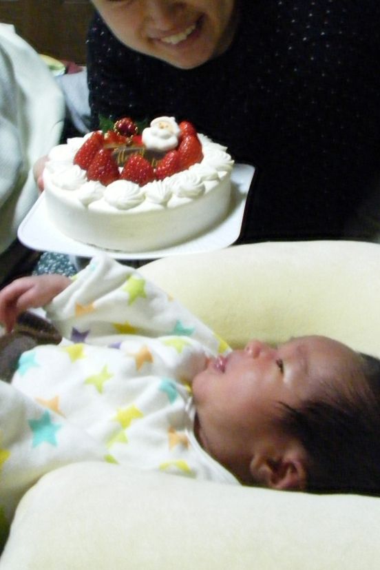 今年も忘れずに撮ります!!ケーキを見つめるだけの我が子も来年にはパクパク食べていることでしょう![]()