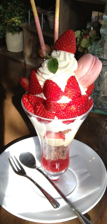 光に照らされた、苺パフェ!とっても綺麗だったな~。