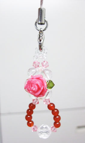 この前は思い切って バラと天然石のキーホルダー を買っちゃいました。