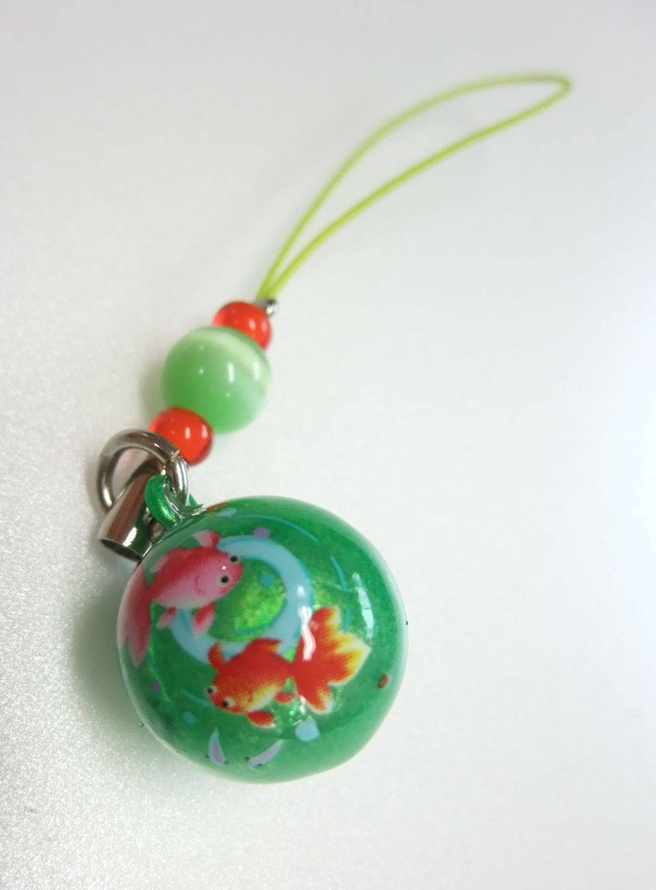バラの水琴玉は鞄に付けて、金魚の水琴玉はカギに付けようか……
