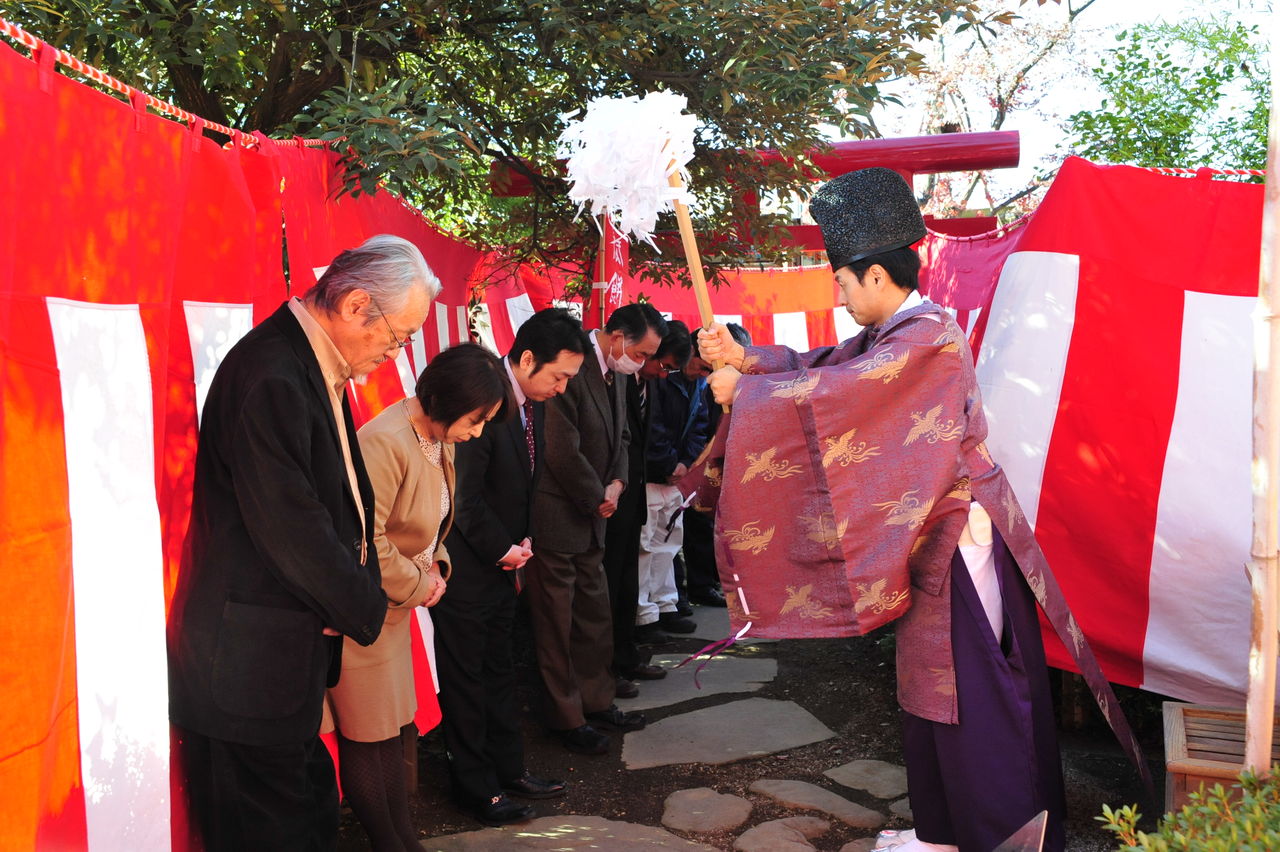 厳かに執り行われる神事をみて、