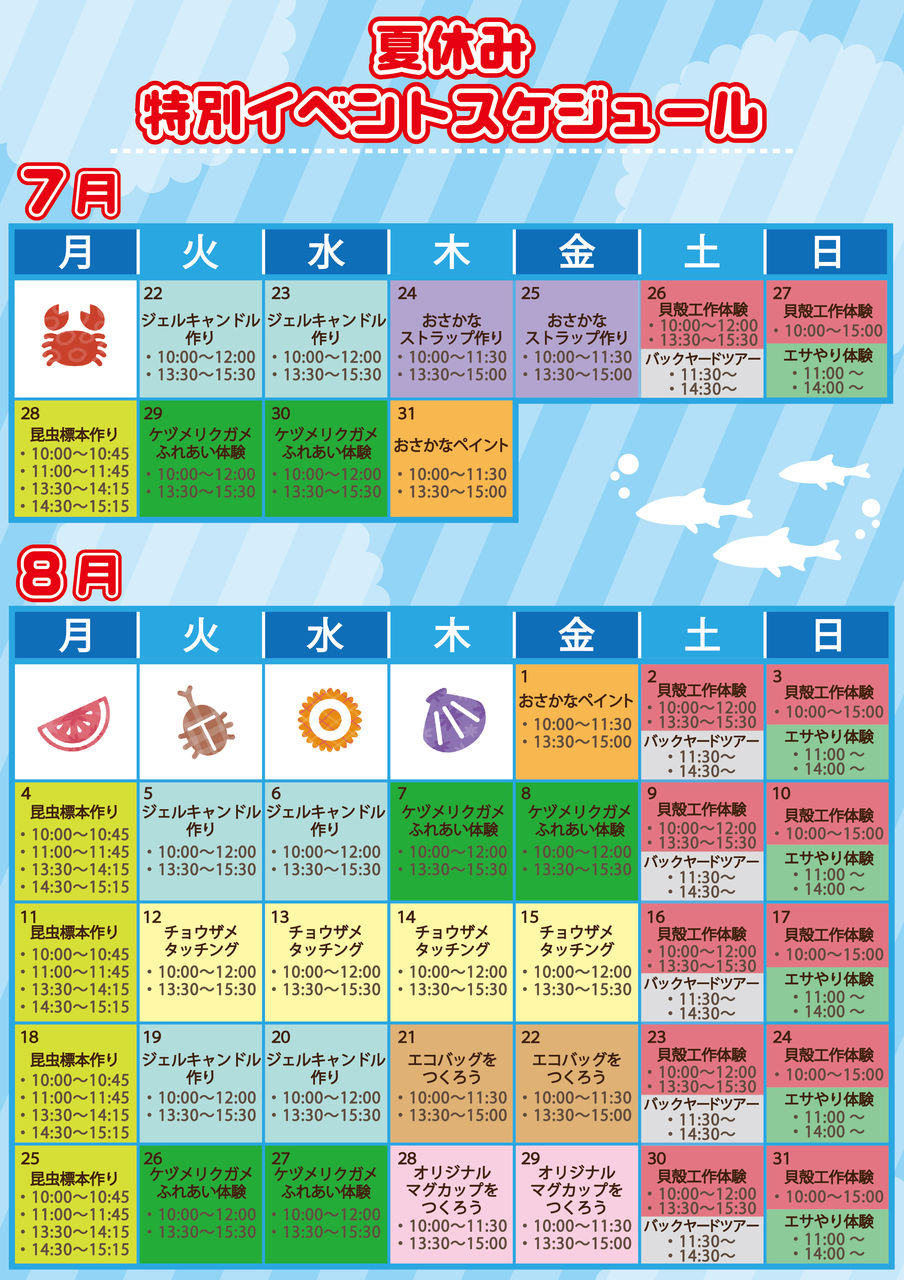 8月1日から「水族館写生大会」などのイベントも開催していますよ。