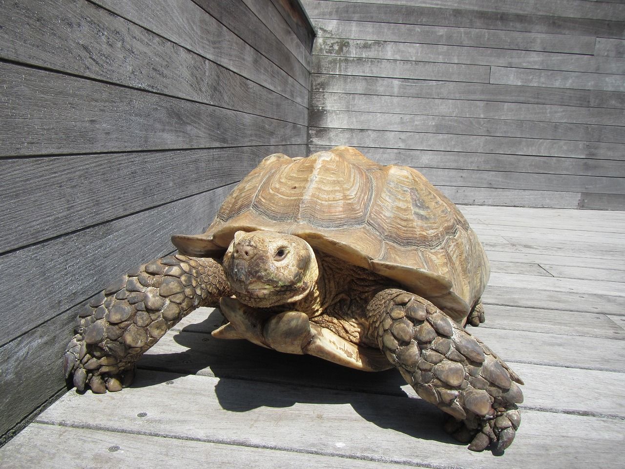 ケヅメリクガメのマメゾウ君と触れ合えるのも