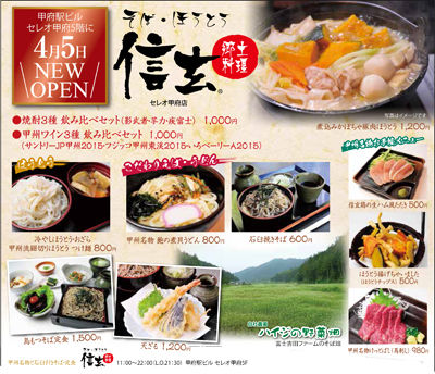 新店舗、そば・ほうとう 郷土料理「信玄」